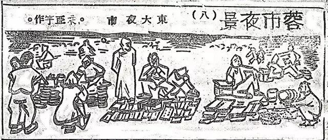 1941年《华西晚报》刊登的东大街的夜市漫画