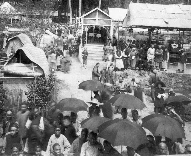 1911年成都传统的花会与鼓励商品制造业的劝业会合并召开,该照片为美国人那爱德(Luther Knight)所摄