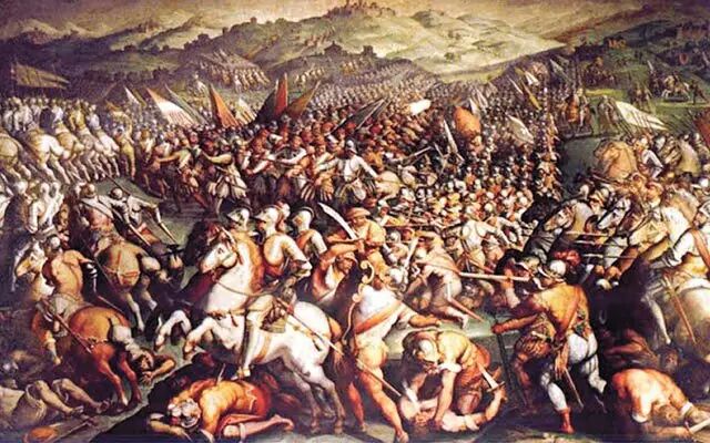 不兴土木,何以更新气象?扩建五百人大厅就是其中一项工程。承包人就是那个瓦萨利。除了建筑本身,也要负责内部装饰。今天大厅里的壁画和天顶画,都是他携弟子完成的,包括《但丁密码》里那幅《玛尔恰诺战役》。此前雷奥纳多的未竟之作就此被覆盖。他是个慢工细活的苦吟派,而他晕染人物面部光效的招牌技法,也不允许他快。当时的湿法壁画(fresco)要求画家在新抹的泥灰干透之前快速画完,颜料随即吃进灰层,想修改就得铲掉重来。所以他在米兰慈恩圣母堂留下的《最后晚餐》,就用了干法(secco)。