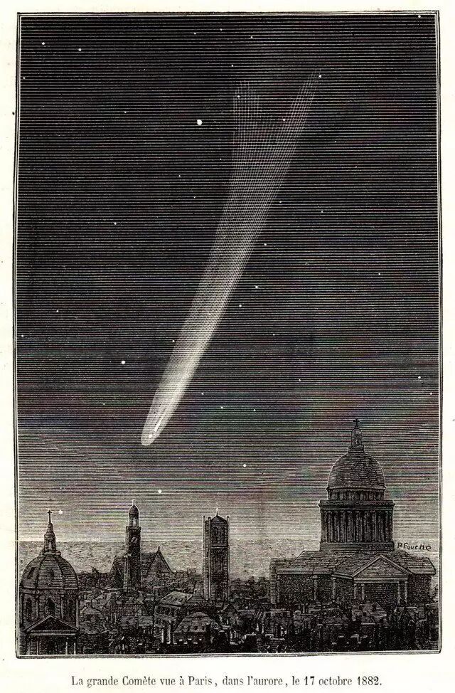 ▲ 1882年10月17日大彗星掠过巴黎上空的情形