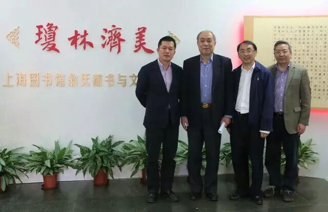 作者在查阅《翁同龢日记》手稿时,与翁氏后人翁以钧先生(左二)的合影