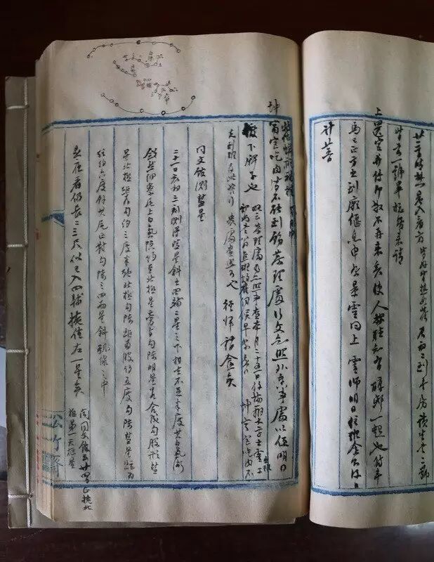 《翁同龢日记》近年由翁同龢旅居美国的后人翁万戈先生捐赠上海图书馆。手稿中的星图,亲手抚之更可感受当年气息。注意此时正处慈安太后丧期,故日记本底框从通常的红色改成蓝色。
