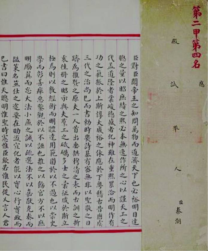 ▲殿试后,读卷官拆弥封,于御前用补笔填写一甲三名及二甲次序