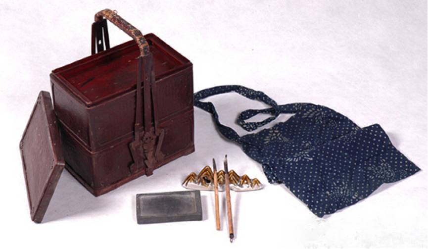 ▲考篮、卷袋与笔砚。考篮的容量比较大,可以装下很多东西,晚清秀才齐如山回忆说,这种大考篮可以装下包括饭碗、筷子、瓢羹、洋烛、洋火、茶叶、压字圈等生活必需品。