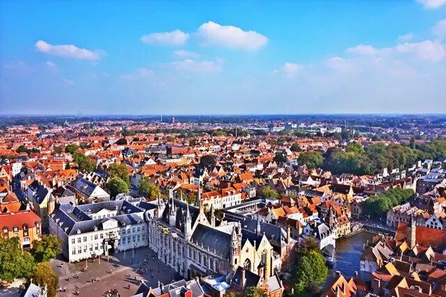 有个很受欢迎的黑色匪帮片,叫《在布鲁日》,大家或许都看过。片中的两个杀手,暗夜登上老广场边的大钟楼,接着就出了人命。要是白天,由这个制高点向西远眺,你会看到一组风力电站的叶轮,再往远处是一座通往北海的港口。然而直到15世纪,钟楼下的古城就是港口。15世纪开始,北海水面下降,海岸线一路退至20公里外,财富也随城中主要运河一起开始干涸。