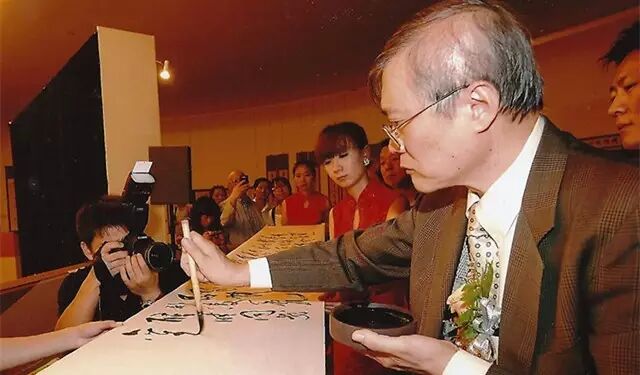 2015年陈文岩(左二)书法作品在北京中华世纪坛展出