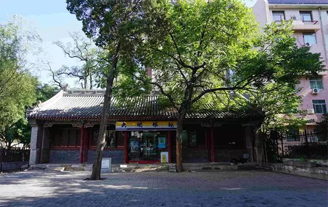 海淀火神庙位于北京大学西南角墙外,大殿前三棵古树,一槐一柏一柳树,均有百年龄,向东南略略倾斜着,这便是百年来被冬天西北风狂虐的结果。火神庙归属北大管理,租给“大明眼镜店”当营业用房。