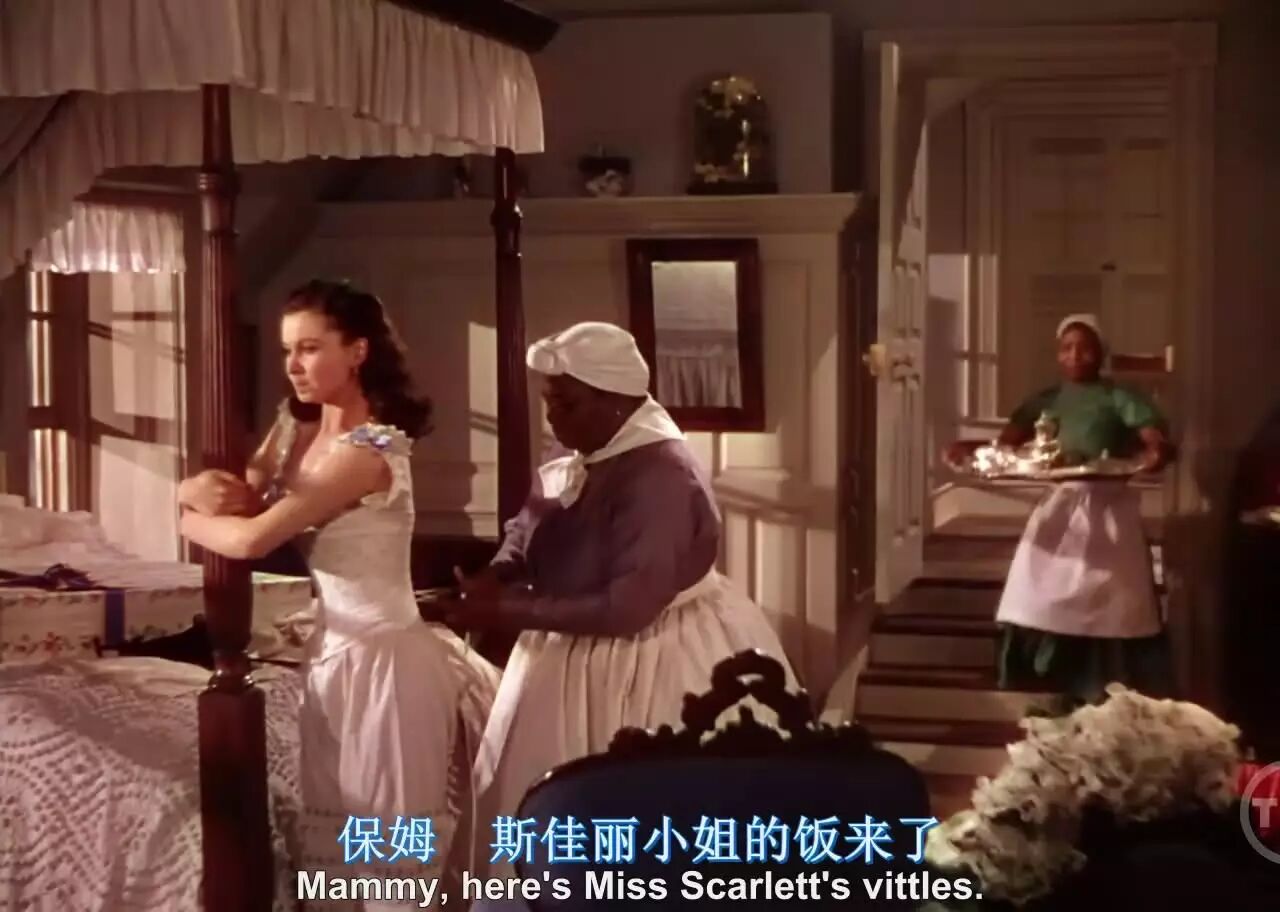 ▲电影《乱世佳人》中保姆帮助斯佳丽小姐束紧腰带,抱着柱子利用反作用力达到最佳小蛮腰。
