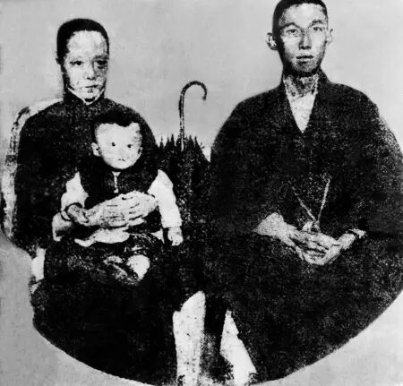 ▲ 1916年,蔡锷赴日本就医前,与侧室潘蕙英、幼子蔡永宁合影