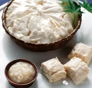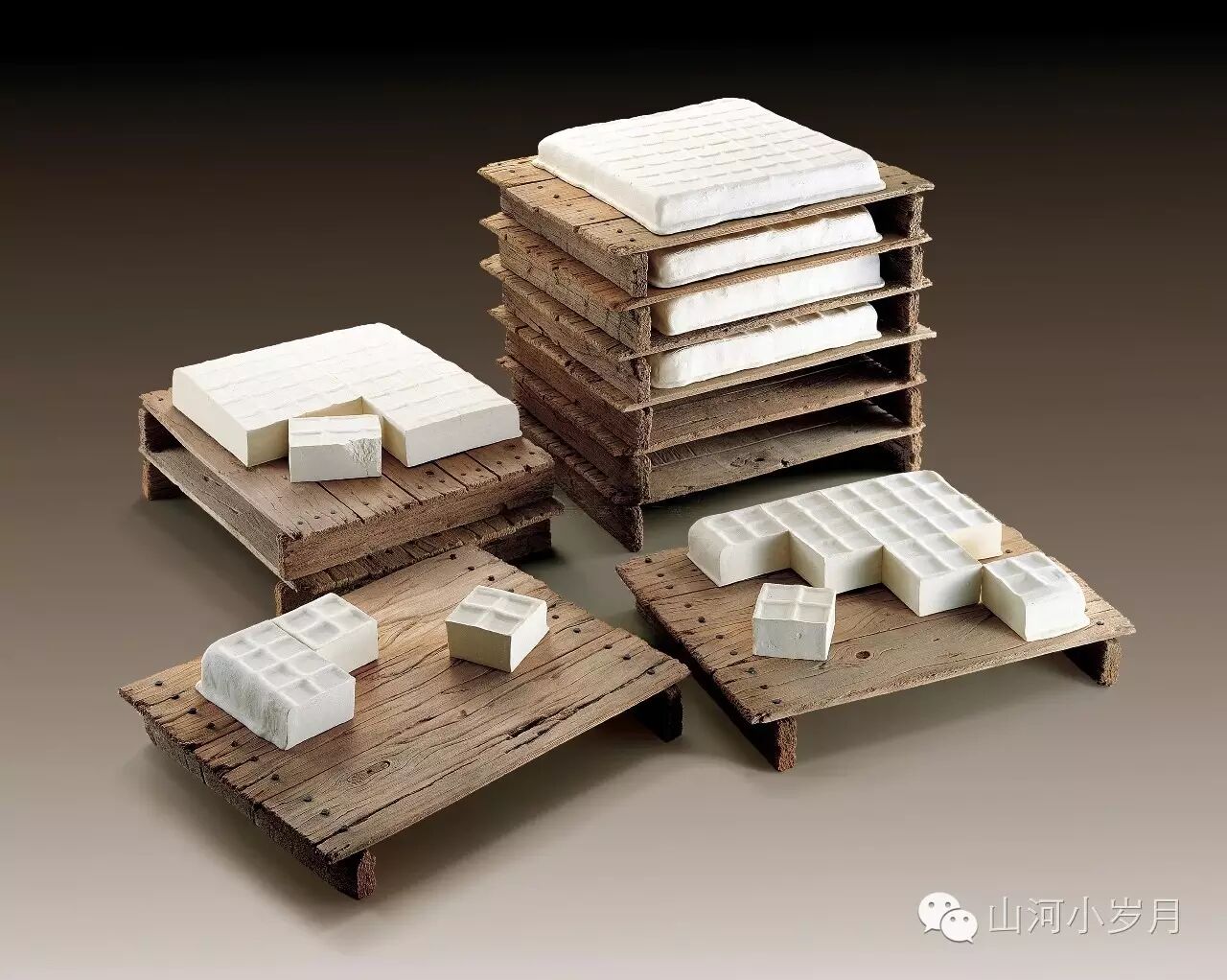 把豆花捞起来,用布包了,放在木箱里,压去了水,就成了豆腐。木箱的盖是活动的,盖上压着很重的石块,箱底有一条条的槽,水就从槽里流出来。