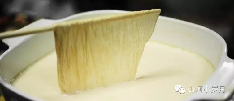 △豆浆上面的这一层,便是豆腐皮,日本人叫汤叶,我的最爱。
