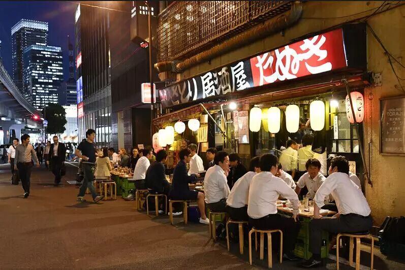 日本东京,下班后的公司职员在居酒屋喝酒吃饭。东方IC供图