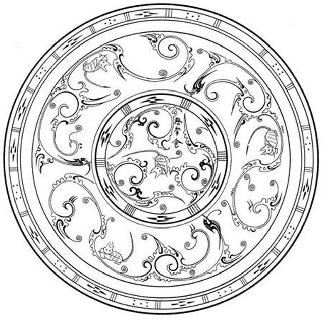 ▲ 马王堆汉墓出土的漆盘纹样,可在其正中及周围看到四只小猫