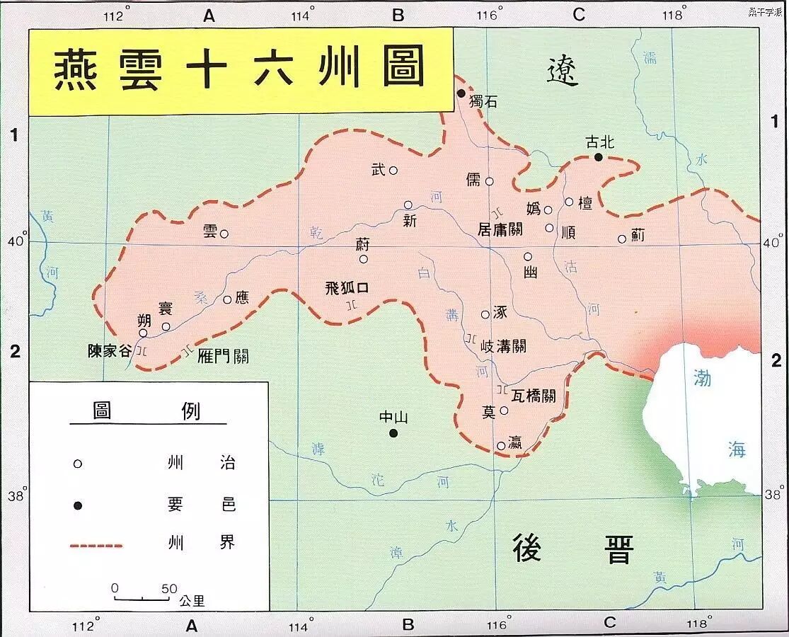 五代时期的“燕云十六州”地图。北京在很长一段时间里名为“幽州”。