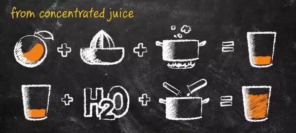 在超市里,很多瓶装果汁往往标着「100% 纯果汁」的标签。一般来说,这种果汁其实并不是榨成汁之后直接包装出售的,而是经过了浓缩还原的加工。