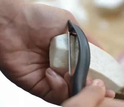 1.杏鲍菇用刮皮刀刮成薄片,用刀切也行,不过没有刮的薄,且易碎,口感略差