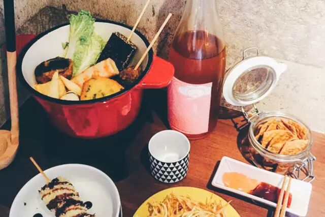 一家非常受欢迎的素食火锅店,客人提著菜篮在店里的蔬菜墙上自由“采摘”,围绕木长桌比邻用餐,搭配中药卤味汤底,衬托蔬菜原始的甘甜,完全没有吃草的凄冷感。