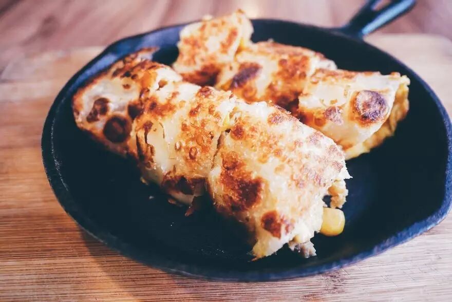 LOCO FOOD 是间台湾早餐店,门口墙壁上餐单密密麻麻,有黄金星星标识的都是重点推荐,最有名是酥皮蛋饼,里面放烧肉、三星葱、杏鲍菇,蛋饼皮改良过香酥皮脆,比普通蛋饼多一份酥皮的口感,阿嬷烧肉三明治也是明星款。