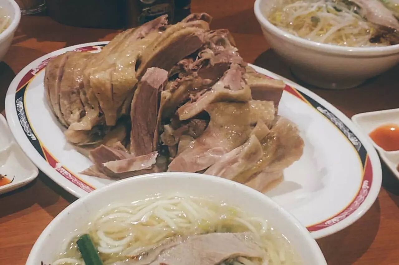 名字叫鸭肉扁,其实是个吃鹅肉的店。1950 年代就开始营业,老板名“扁”,早期卖鸭,后来靠鹅肉大红,但招牌一直懒得改。