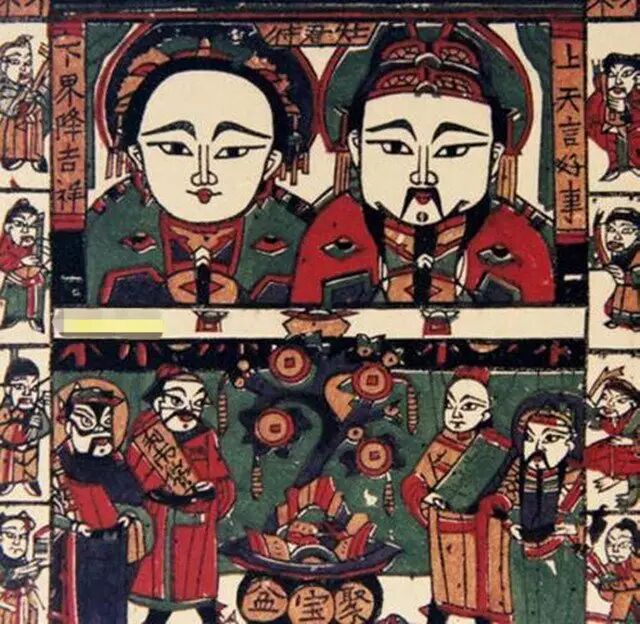 家家户户的灶壁上都供奉灶神,是一张木版水印神像,出自天津杨柳青画匠之手。两边贴着“上天言好事,下界保平安”、或者“二十三日去,初一五更回”的对联。