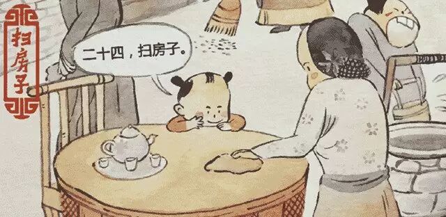 腊月二十四是扫房日,很有仪式感,家人把平常摆设的瓶瓶罐罐,锅碗瓢盆都从屋子里搬出来,赶上老阳冬暖,女人孩子们坐在院子里说笑擦拭,寓意洗掉旧年尘埃。而男人或者家里的半大男孩子就要干些登高的体力活,拿着长鸡毛掸子清扫房间的顶棚角落,将房屋里外打扫收拾一番。这项活动很像今天机关学校定期集体打扫卫生的活动,具备群体性,一家人欢欢喜喜弃旧迎新。