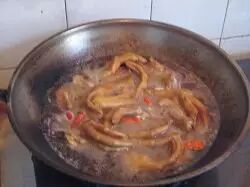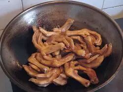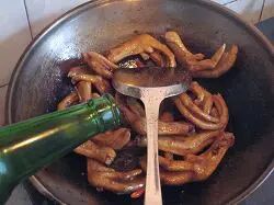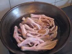 加入没过鸭掌的水,水开后改中小火慢炖。