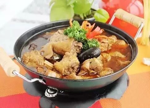 鸡切块,烧热锅,放入色拉油,将鸡块倒入锅中翻炒至出香、鸡肉变色,再加入盐、糖、老抽、味极鲜、排骨酱和麻辣酱翻炒均匀,然后加鲜汤,放入葱段、姜片、香料袋,盖上锅盖焖至鸡肉酥烂、香气冒出即可出锅。