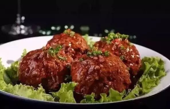 5、炒锅留少许油,放入葱、姜煸香后倒入清水,生抽、老抽、料酒、白糖和炸好的肉丸子,大火烧开后转小火炖煮约30分钟。至汤汁收过半时,用水淀粉勾芡即可。