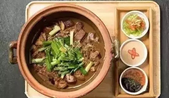 羊肉,青、红椒圈,姜,蒜,青蒜段,面豉酱,柱侯酱,蚝油沙茶酱,南乳芝麻酱,陈皮,椒丝,腐乳,海鲜酱,米酒。