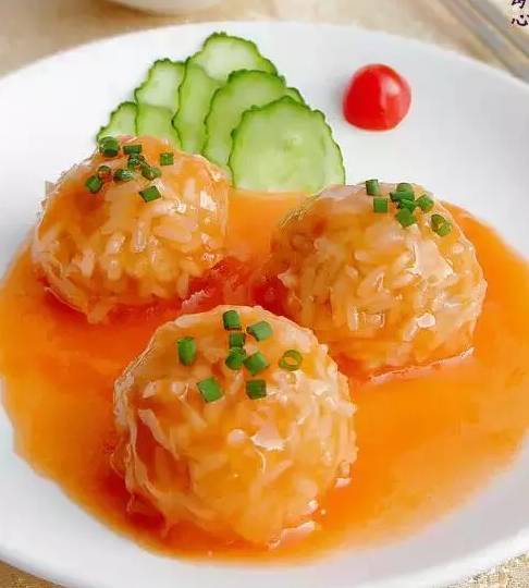 12、调入适量水淀粉勾成芡,淋在蒸好的肉丸上即可。