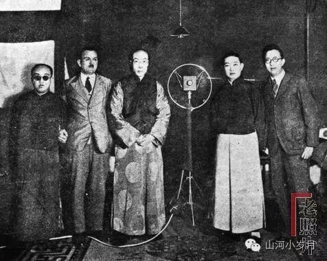 △杨小楼(左三)和梅兰芳(左四)灌制《霸王别姬》时,郑子褒就在场(左一戴墨镜者)。