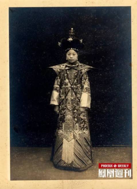 ▲末代皇后婉容大婚朝服像。婉容(1906-1946),郭布罗氏,满洲正白旗人,其父荣源时任内务府大臣,是位开明人士。婉容幼年时期接受良好教育,通晓琴棋书画,她曾就读天津美国教会学校,对西方文化抱有浓厚的兴趣,喜好西式餐饮与爵士音乐。民国十年(1921),婉容正式获选为皇后,次年完成大婚仪式,婚后入住慈禧生前曾居住的储秀宫。末代帝后婉容受皇帝溥仪喜爱照相的影响,也留下许多照片。当时帝制虽已结束,民国政府仍给予清室优待,“大清皇帝辞位之后,尊号仍存不废,中华民国以各外国君主之礼相待。”溥仪的婚礼也还是照搬清帝大婚的礼仪,正式的婚礼长达五天。照片里婉容体态窈窕,温柔秀丽,透着身为皇后的独特气质。早年的婉容,生活多彩多姿,她与溥仪的合照也显露出不少愉快时光,但到了后期,帝后关系日渐生疏,生活的空虚使婉容开始沉溺鸦片,终致无法自拔。