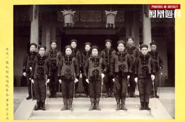 ▲新军操练,保定一镇军官序立。所谓“新军”,是相对于清代旧式八旗、绿营与湘淮等军种的称呼,是清末光绪年间至宣统年间,仿照外国军制,采用西式操练,购置外国武器装备,以及聘请洋教习所建立的新式军种。清朝末年,政权更迭、人事交替、社会变迁,在紫禁城已近旧时代的“黄昏”的同时,新生事物在全国各地涌现。照片拍摄于光绪三十一年(1904),当时日俄战争爆发,直隶总督兼北洋大臣袁世凯奏请扩大北洋新军,在全国建立新军共三十六镇,他率先在直隶地区编成北洋陆军常备军三镇,分驻迁安、马厂与保定三地。摄影术传入中国后,被清政府用以记录兴业图强的诸多重要作为。光绪三十一年,朝廷派遣兵部尚书长庚会同徐世昌等人进行成军考验。宣统二年(1910),朝廷针对已成军的北洋陆军各镇进行校阅,借以检查各镇军事实力与战备情况。上述检验校阅过程,各军事单位皆一一拍摄照片,并制成精美图册供太后与皇帝御览。光绪三十一年成军考验留有《北洋陆军保定一镇暨京镇兵操照片》《北洋陆军迁安马厂两镇兵操片》,可直观反映清末新军之操练、装备与传统旧式军种的差异。