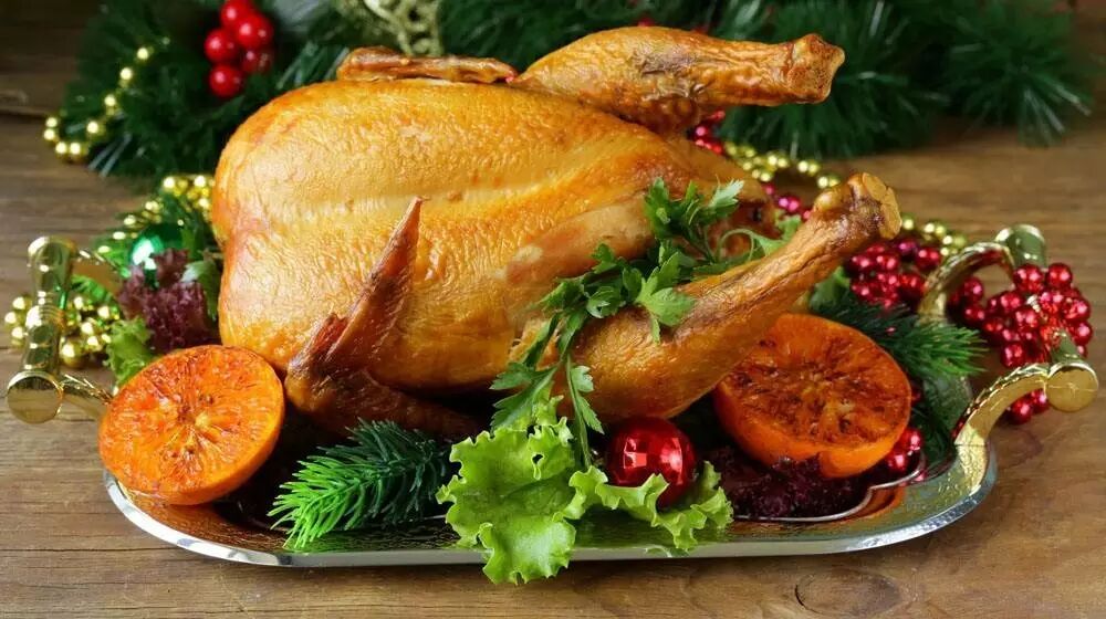 ▲圣诞烤鸡,作为分餐制下唯一可以放在餐桌正中轮流取食的菜品,个大量足。(资料图/图)