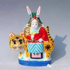 供桌上,最显眼的是兔儿爷。兔儿爷长什么样?老舍先生在《四世同堂》中曾经这样描写: