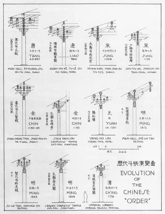 △梁思成先生绘制的中国历代斗拱演变