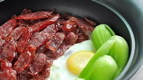 广式腊肠算是清淡的广式料理中比较重口的一道了,煲仔饭大致归为粤菜类,但是咸鲜美味的煲仔饭应该算是清淡的广式料理中比较重口味的一道了,腊肠本身的油脂被高温必出渗入饭中,让平淡无奇的白米饭变得油润可口,若在能淋上一点豉油那更是锦上添花的美味了。
