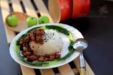 卤肉饭虽然是看似寻常的一道美味,但是越是寻常的东西做起来越是讲究,就像舒国志先生所说的:卤肉饭的肉必须切成小条,肥、瘦、皮皆在那一小条上,浇得白米饭顶,危颤颤抖动方成。且不可用绞肉,绞肉便尝不到肥肉的晶体,已被绞成油水:也尝不到瘦肉的弹劲儿,已被绞成柴渣。