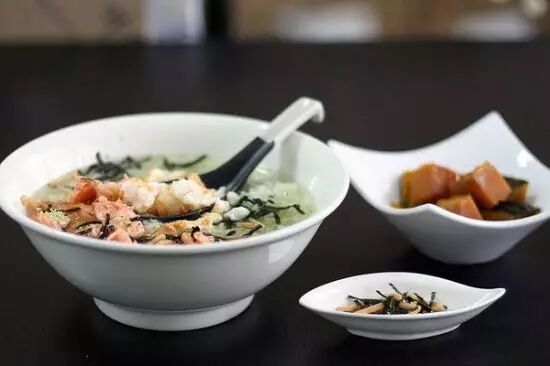 如今的茶泡饭成了日式料理中的家常味道,日本人闲暇时喜欢和朋友在居酒屋里和小聚一番,嘴里吃得口重之时点一碗的茶泡饭作为收尾,倒也解了这嘴里的油腻,清爽的结束一番小聚。