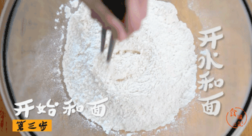 用滚烫开水做烫面,彻底破坏面粉的筋,让面团柔软萱活,做出来的卷饼软滑鲜香。加入面粉中的时候,用一根筷子搅拌。