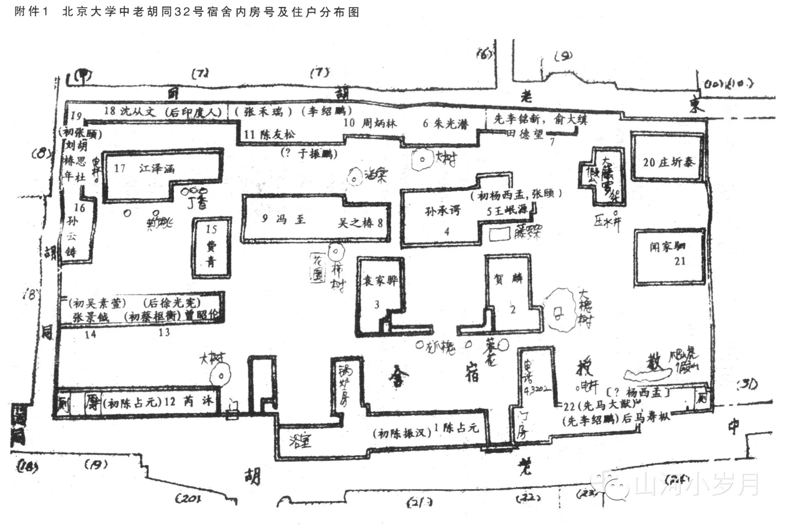 要知道中老胡同32号的更多故事,推荐大家都去看看《中老胡同三十二号》。好友孙琰的母亲、北大西语系教授陈占元的女儿陈莹先生是三十二号的一份子,也参与了这本书的撰写和编辑。得知我要写这条微信,陈先生还给我发了32号胡同的房屋分布图,特此致谢。