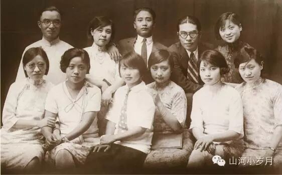 △朱自清(后排左一)、陈竹隐(前排左一)与陈竹隐的结拜姐妹及她们的夫婿。