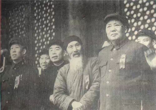 大家都注意到了,里面有个白胡子老头。有同学问我,这是齐白石吗?虽然主席确实很是喜欢齐白石,但是,能够站在开国大典上、凌烟阁标名的,确实不太可能是他,其实,这张是被选为副主席的张澜。