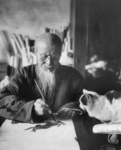 齐白石也和女人拍照,不过他和女人站在一起的时候,就没有张大千这么狂放。