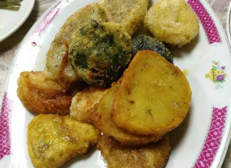 要是人多的话可以点杂粿,就是拼盘,各种口味的粿都可以吃到一点。三角形的咸水粿,咸甜适中的粉粿,芋头粿,韭菜粿,菜包果…………每一个都极好吃。