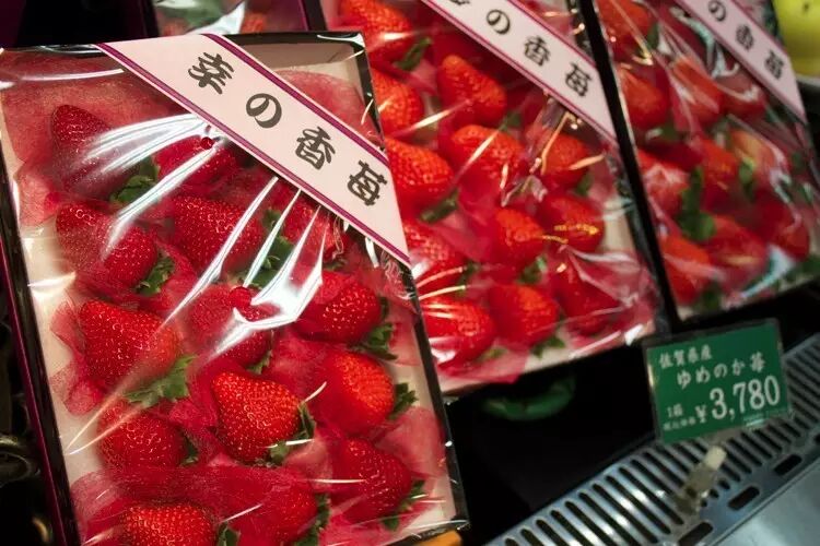 日本产的水果都很贵,以前在东京吃的草莓,普通品种要折合人民币七八元一颗,稍名贵的品种甚至要25元一颗。