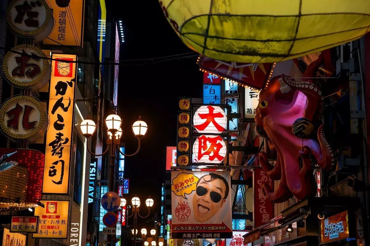关西的大阪是日本唯一一个彻夜灯火通明的城市,其他城市一般到7点街道就静悄悄了,除了居酒屋