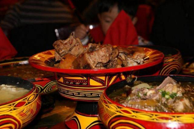 西北地区一特色吃食,根据主要用料不同,分为荞面搅团、玉米搅团和洋芋搅团,陕北用荞面做搅团,更筋道味美。在西北,有一种说法:谁家娶的媳妇儿贤不贤惠,是要看看她打的搅团光不光或筯道不筯道。一碗酸油菜汤,一小油碟,一大碗玉米搅团,边吃搅团边喝菜汤,香喷喷,辣乎乎,油渍渍,酸溜溜,咸丝丝的,五味杂陈,更具民族特色。