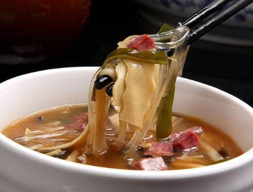 胡辣汤,又名糊辣汤,河南传统早餐。是中国北方早餐中常见的汉族传统汤类名吃。由多种天然中草药按比例配制的汤料在加入胡椒和辣椒又用骨头汤做底料,其特点是微辣,营养丰富,味道上口,汤味浓郁、汤色靓丽、汤汁粘稠,香辣可口,十分适合配合其它早点进餐。目前,已经发展成为河南人和陕西人都喜爱和知晓的小吃之一。