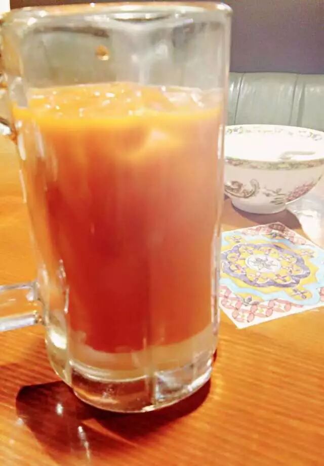 最后要推荐的是他们家唯一的特色饮品:拉茶。拉茶看起来像奶茶,喝起来也像奶茶,但是多了一份炼奶和巧克力的浓郁,要注意的是,喝之前一定要搅拌均匀。楼主个人觉得,还是要冰镇的比较好喝。